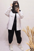 📌شلوار : قد : حدودا ۸۲ سانت کمر در حالت کشسانی : حدودا ۹۸ سانت باسن : حدودا ۱۲۰ سانت 📌شومیز : قد جلو : حدودا ۶۸ سانت قد پشت : حدودا ۷۸ سانت دور سینه : حدودا ۱۳۰ سانت