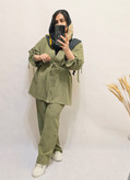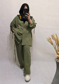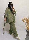 قد شلوار ١٠۵ 📌 قد شومیز ٧۵ 📌 قد آستین از دور یقه ۶۵ 📌 راهنما سایز : - دور سینه تا ١٣٠ - دور باسن تا ١١۵ - دور ران تا ٧٢