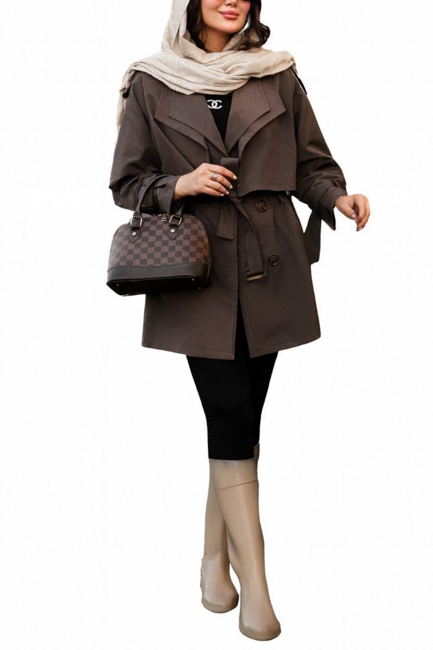 پالتو کوتاه بارونی آستر دار مدل مینو