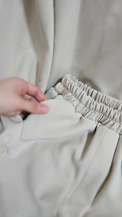 کمر شلوار کش دارای جیب کاربردی....❌عزیزان درمورد پارچه ی ست پرسیدین پارچه کمی کشسانی داره ✔️ فوق العاده بادوام و با کیفیته چهار فصله و گِرَم پارچه بالاست پرز نمیده - چروک هم نمیشه