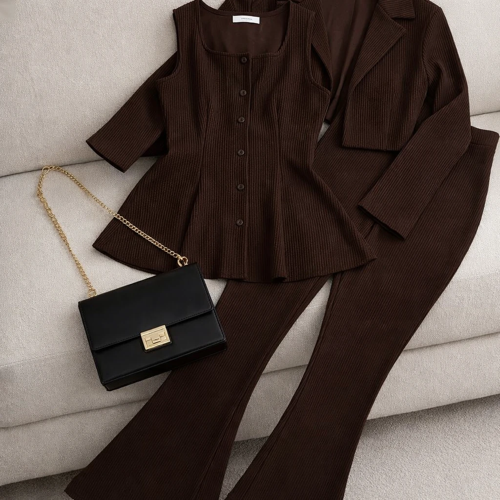 🖤 نکتهی استایل: با کیف زنجیردار کوچک و نیمبوت چرم یا کفش پاشنهدار، این ست به یه استایل فوقالعاده شیک تبدیل میشه